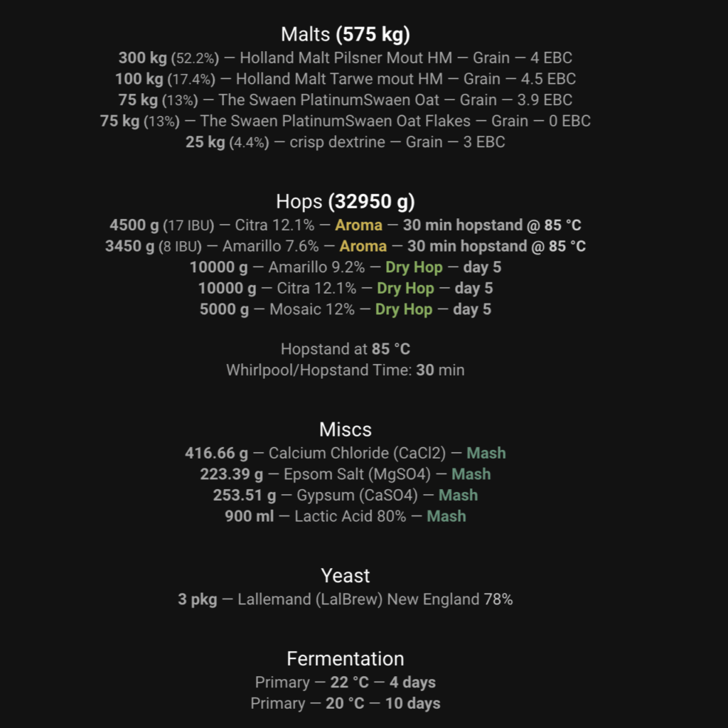 De vier hoofdingrediënten van bier (water, mout, hop, gist) kunnen duizenden variaties opleveren, maar moeten in de juiste verhouding staan. Een recept zorgt ervoor dat bitterheid (IBU), body, alcoholpercentage, kleur en mondgevoel in balans zijn. Onze missie is om iedereen een avontuur te bieden middels een slok van ons bier. We doen dit door zowel klassieke als innovatieve bierstijlen te produceren van topkwaliteit!